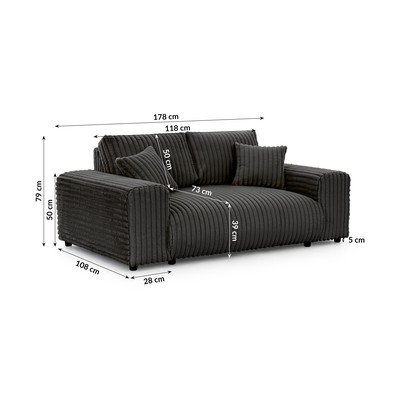 От рипсено кадифе, тъмносив, водоустойчив/устойчив на петна, двуместен, ширина 178 cm