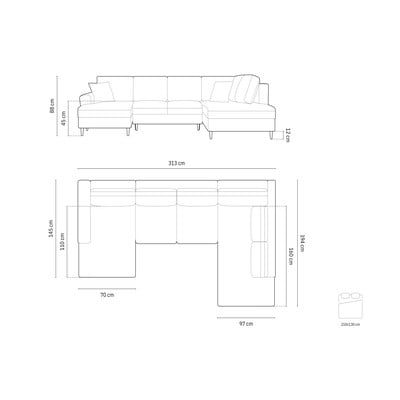 Кадифен, сгъваем/с място за съхранение, десен ъгъл/U форма, тъмносив, други, ширина 313 cm