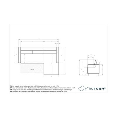 От рипсено кадифе, сгъваем/с място за съхранение, десен ъгъл, тъмносив, триместен, ширина 236 cm