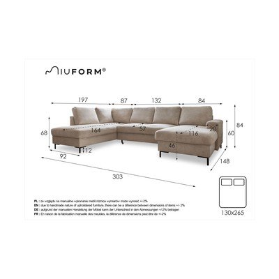 Ъглов диван Lofty LillyОт рипсено кадифе, сгъваем/с място за съхранение, ляв ъгъл/U форма, тъмносив, други, ширина 303 cm, дълбочина 197 cm, дълбочина на седалката 57 cm