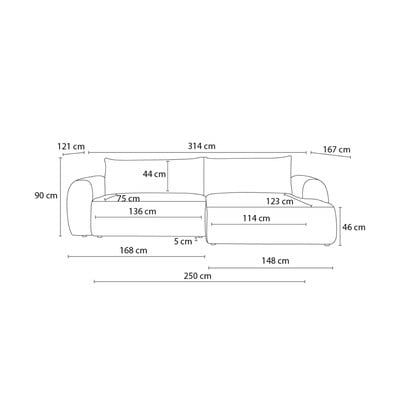 От рипсено кадифе, сгъваем/с място за съхранение, ляв ъгъл, тъмносив, четириместен, ширина 314 cm