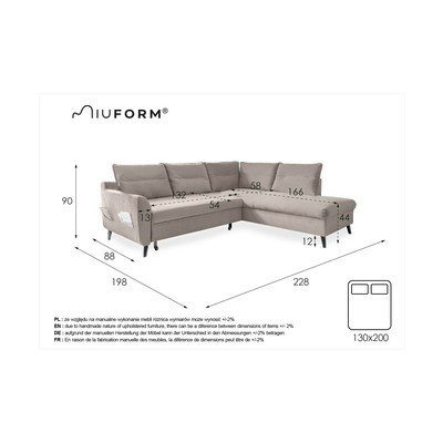 КадифенСгъваемДесен ъгъл/L формаВодоустойчив/подходящ за домашни любимциТъмносивЧетириместенШирина 228 cmДълбочина 198 cmДълбочина на седалката 54 cm