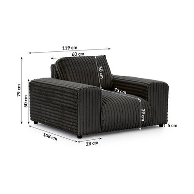 Тъмносиво кресло от рипсено кадифе Justin – Ropez