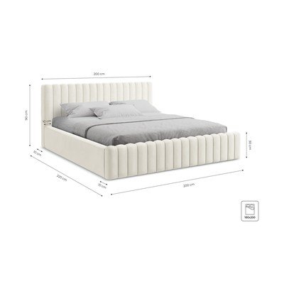 Двойно легло 180x200 cm тапицирано с място за съхранение с включена подматрачна рамка в сребрист цвят Lemi – Makamii