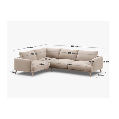 Бежов кадифен ъглов диван (ляв ъгъл/L форма) Naomi – Micadoni