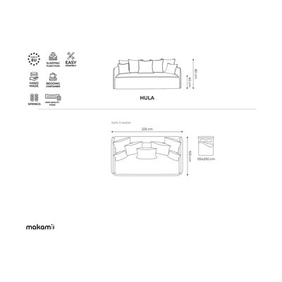 Светлосив кадифен разтегателен диван с място за съхранение 225 cm Hula – Makamii