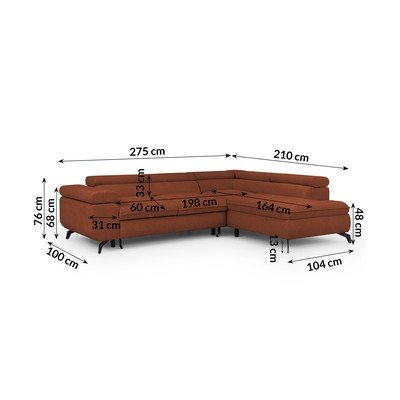 ШениловПозициониране/сгъваем/с място за съхранениеДесен ъгъл/L формаТеракотенПодходящ за домашни любимци/устойчив на петнаЧетириместенШирина 275 cm