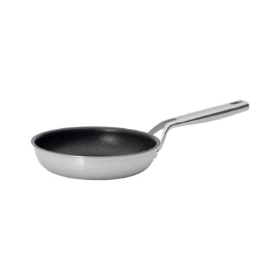 Благодарение на многослойната технология от неръждаема стомана тиганът се загрява изключително бързо до стабилна температура и разпределя и задържа топлината перфектно чак до ръбовете. Комбинацията от многослойна неръждаема стомана с незалепваща тефлонова повърхност осигурява перфектна топлинна ефективност, както и високо ниво на комфорт при употреба без прегаряне. Благодарение на външния слой от неръждаема стомана тиганът може да се използва на всички видове котлони, включително индукционни. Ергономичната заварена дръжка без нитове осигурява удобна и безопасна употреба.