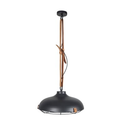 Висящо осветително тяло DekС метален абажур, метално/кожено, сиво/кафяво, ø 12 cm, височина 114 cm