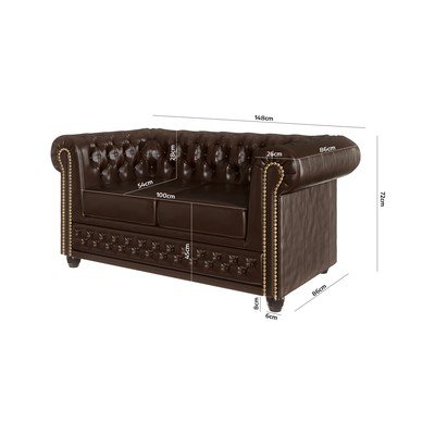 От изкуствена кожа, честърфийлд, тъмнокафяв, водоустойчив/подходящ за домашни любимци/устойчив на петна, двуместен, ширина 148 cm