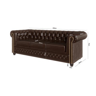 От изкуствена кожа, честърфийлд, тъмнокафяв, водоустойчив/подходящ за домашни любимци/устойчив на петна, двуместен, ширина 203 cm