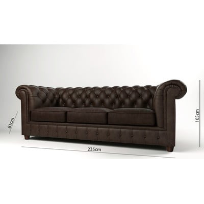 Кадифен, честърфийлд, тъмнокафяв, триместен, ширина 230 cm