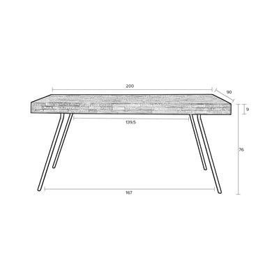 Трапезната маса White Label е с плот от рециклирано тиково дърво с естествено лаково покритие на водна основа. Разстоянието между черните метални крака е 147 см.