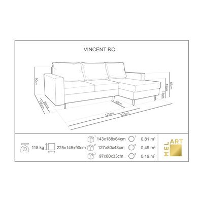Сгъваем, десен ъгъл, син/тюркоазен, ширина 145 cm
