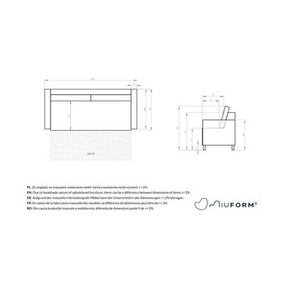Светлосин ъгъл на разтегателен диван, десен ъгъл Charming Charlie - Miuform