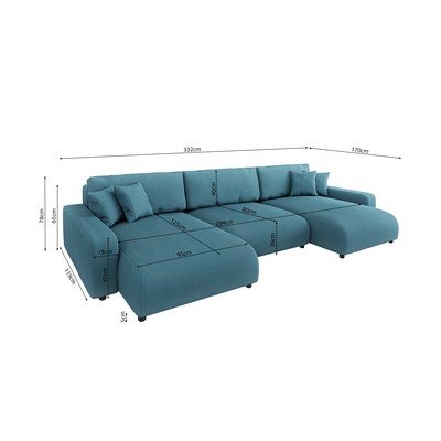 От рипсено кадифе, сгъваем/с място за съхранение, U форма, тюркоазен, други, ширина 332 cm