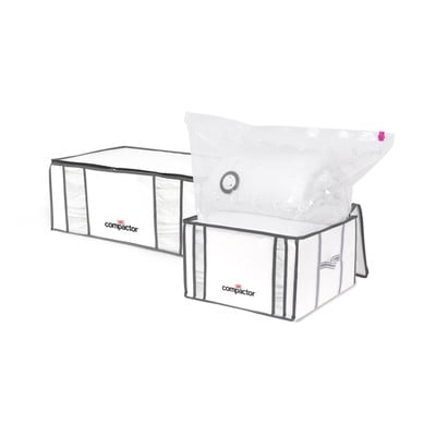 Кутиите спестяват до 75% от пространството за съхранение, като същевременно предпазват съхраняваните тъкани от акари, молци, прах, влага и мухъл. Вътрешният плик е изработен от полимер с памет за формата, който позволява да се върне в първоначалното си състояние при освобождаване на въздух, без да уврежда текстилните влакна.