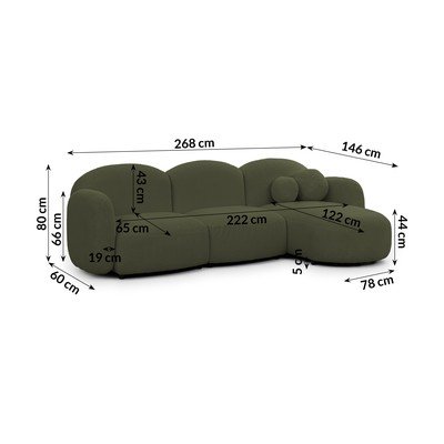 Зелен ъглов диван от букле (десен ъгъл) Orbit – Ropez
