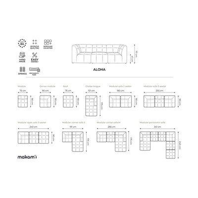 От прежда с примки от букле, U форма, зелен, други, ширина 341 cm, дълбочина 240 cm, дълбочина на седалката 57 cm