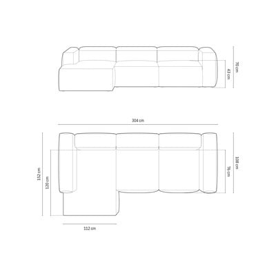 От рипсено кадифе, ляв ъгъл, зелен, четириместен, ширина 304 cm