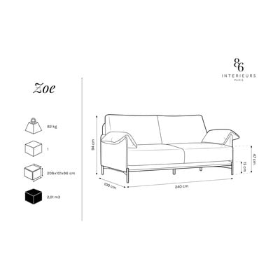 Подарете си елегантност и комфорт с диваните Zoe от Interieurs 86. Изтънченият дизайн подобрява и обединява интериора в модерен стил. Диванът е изработен от плътно тъкан текстил, който е приятен на допир. Тя е изключително устойчива на износване, което значително намалява риска от повреда. Защитният слой предотвратява проникването на мръсотия и попиването на разлети течности. По този начин разливите могат да бъдат отстранени без използването на почистващи препарати.