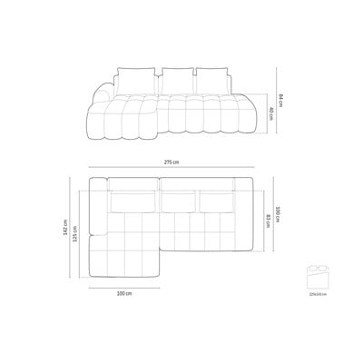 Кадифен, сгъваем/с място за съхранение, ляв ъгъл, зелен, четириместен, ширина 275 cm