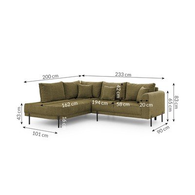 ШениловЛяв ъгъл/L формаЗеленПодходящ за домашни любимци/устойчив на петнаЧетириместенШирина 233 cm