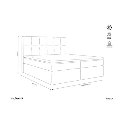 Боксспринг легло Palta140x200 cm, с място за съхранение, тапицирано, с включен матрак, от прежда с примки от букле, ръчна изработка/лесно сглобяване, зелено