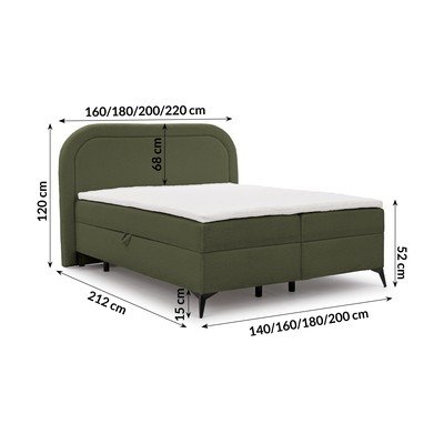 Зелено боксспринг легло 200x200 cm с място за съхранение Ornes – Ropez